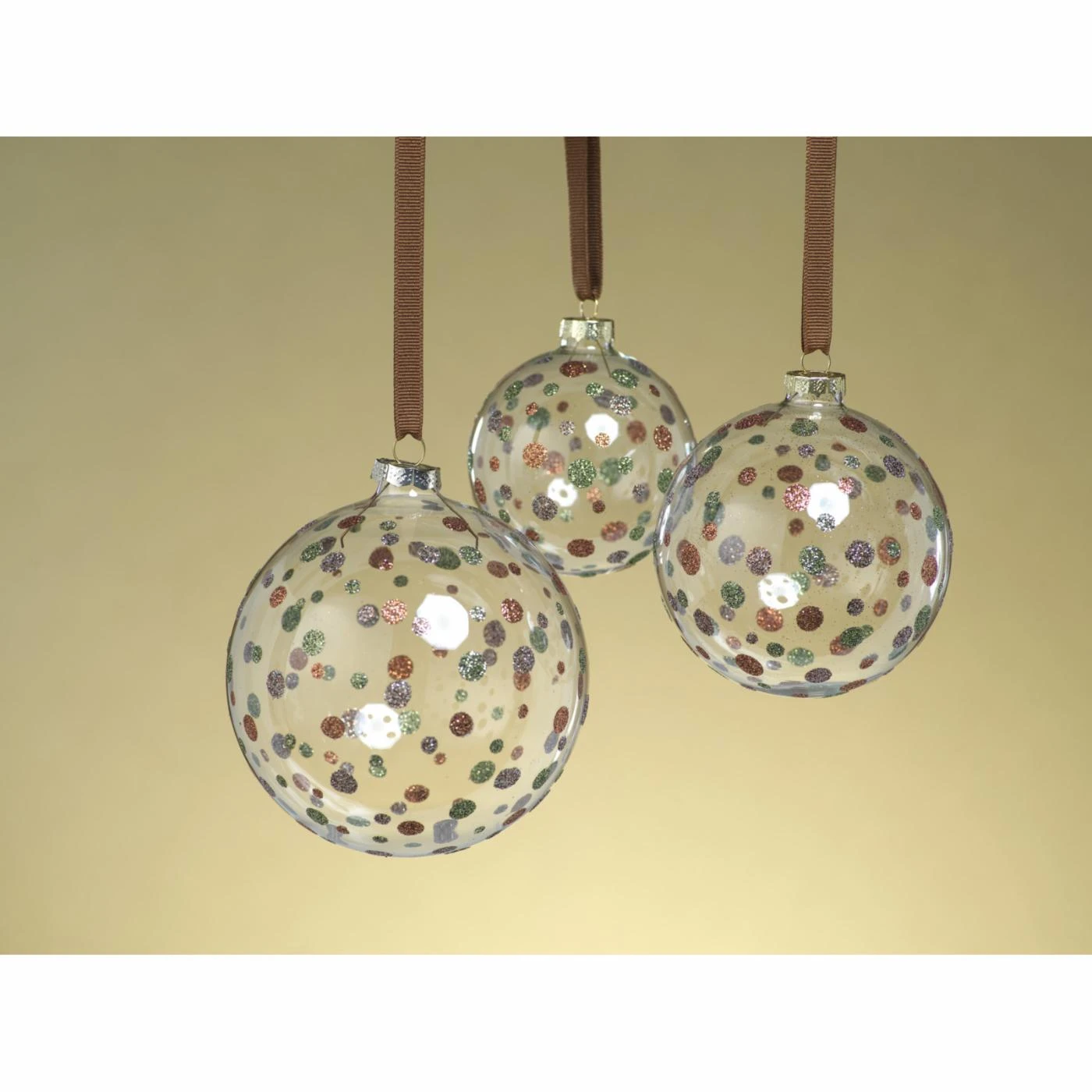 Try something a little more modern this Yuletide with the Dixie Glittered Polka Dot Holiday Ball Ornament – Set of 6. Six matching ornaments are included in this set, offering you a minimalist, mid-century touch for your tree. Each ball is made from clear glass with a metal cap. The ornaments have a clear design and are covered in glittery green and red dots. Choose the size that best matches your tree from the available.