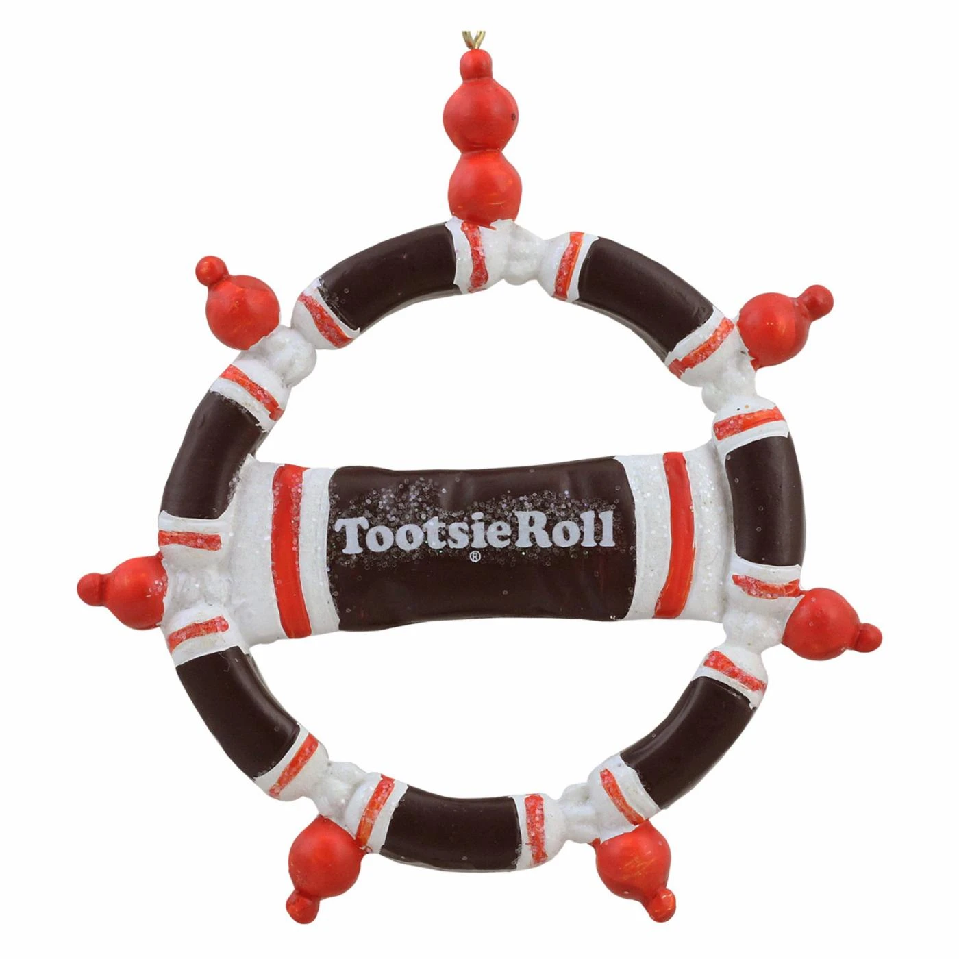 Make decorating sweet with the Northlight Tootsie Roll Christmas Snowflake Ornament. Featuring a snowflake shape with a Tootsie roll center, this Christmas ornament is crafted from resin and finished in the classic brown, white, and red Tootsie roll colors.