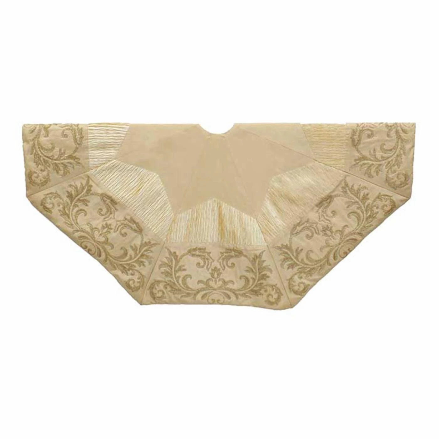 Lend a sense of elegance to your holiday tree with the Kurt S. Adler 50 in. Octagonal Sequin Tree Skirt, featuring soft colors of gold and ivory. Layers of textured fabric lend this octagonal-shaped tree skirt a Victorian-inspired look, while sequined accents give it a touch of glamorous flair.