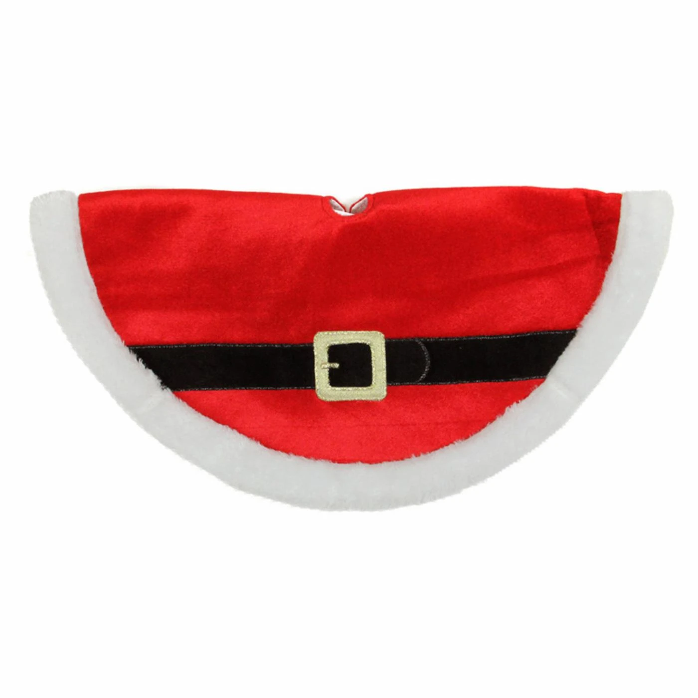 Add a festive touch to your tree display with the Santa suit pattern of the Northlight 20 in. Velveteen Santa Claus Belt Buckle Mini Christmas Tree Skirt. The velveteen fabric of this Christmas tree skirt gives it a soft feel and plush look that’s sure to add visual charm to your holiday decorating.