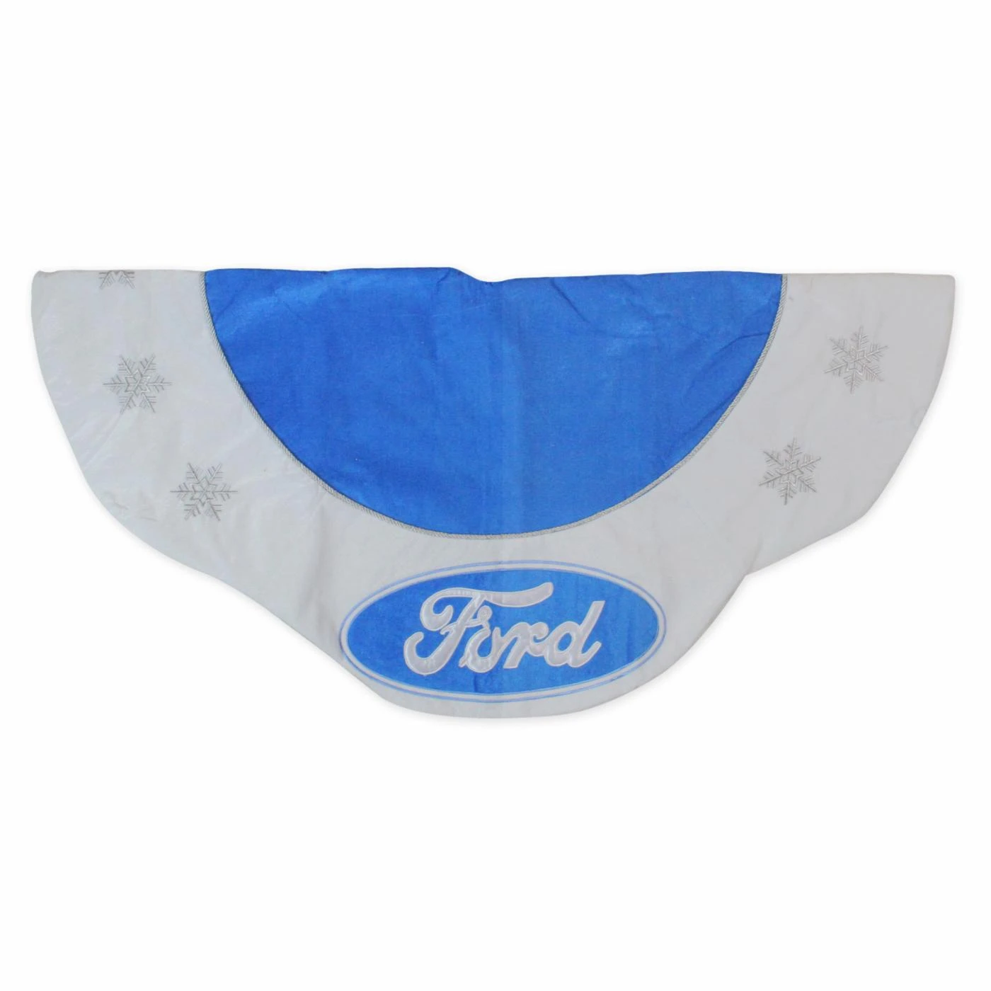 Deck your halls with the Northlight Decorative Ford Scalloped Christmas Tree Skirt, which is adorned with a classic blue and white Ford logo. You’ll love this soft, scalloped Christmas tree skirt adorned in colors of blue and white with silver embroidered snowflakes around the border.