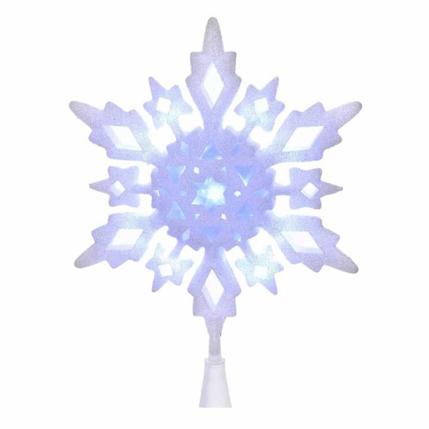 Top your tree in bright style with the Kurt S. Adler 10 in. LED Glittered Snowflake Tree Topper, boasting a classic snowflake design. Made from plastic in a glittery white hue. This Christmas tree topper features cool white LED lights that fade in and out for a warm glow.