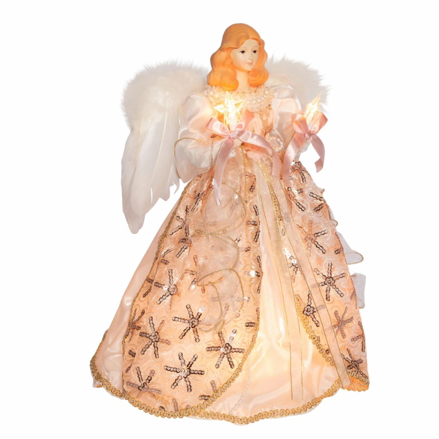 The Kurt S. Adler UL 10 Light Boho Chic Angel Tree Topper is an elegant addition to any holiday home décor! This treetop features a chic angel dressed in a gorgeous flowing robe decorated with snowflakes and is holding a star in each hand. The perfect addition to any holiday tree!