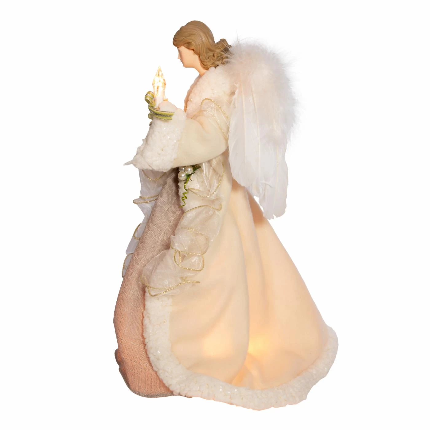 The Kurt S. Adler UL 10 Light Ivory and Gray Angel Tree Topper is a traditional addition to any holiday home décor. This angel treetop is dressed in elegant ivory and gold robes, holding a star in each hand and her robe is decorated with flowers and holly. An elegant addition to any holiday tree!