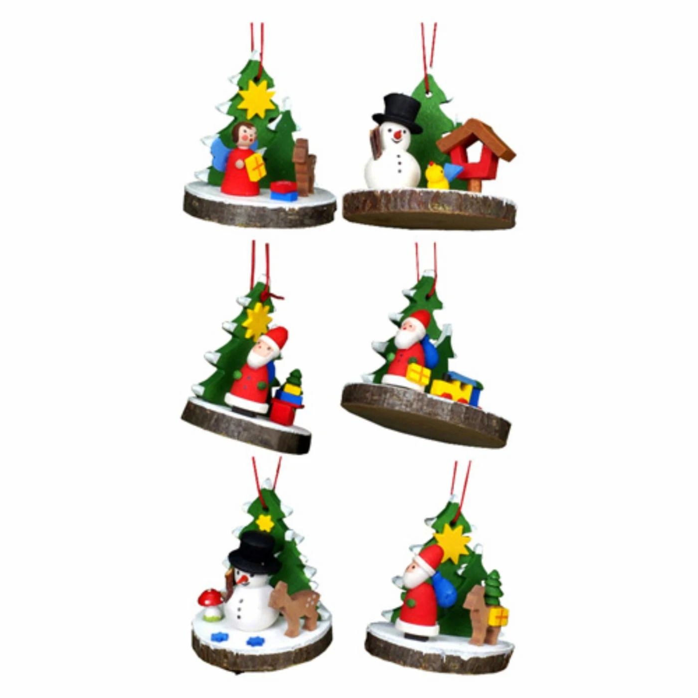 Six charming Christmas scenes are included in this Christian Ulbricht 2 in. Santa In Plane Ornaments – Set of 6. Each is based on a wooden base and is an original Ulbricht design. Each piece in this ornament set was handcrafted and hand-painted by artisans in Germany.