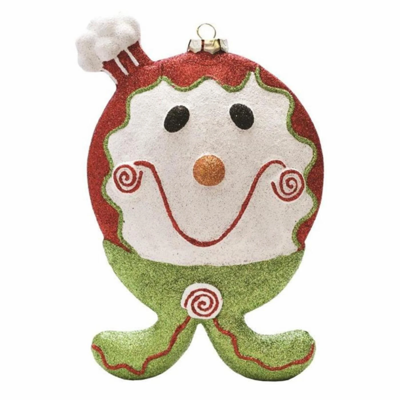 Covered in glittery colors of red, green, and white, the Northlight 9 in. Merry & Bright Shatterproof Gingerbread Boy Christmas Ornament is a whimsical addition to your holiday tree. You’ll love this adorable gingerbread ornament made of plastic for safe, shatterproof enjoyment.