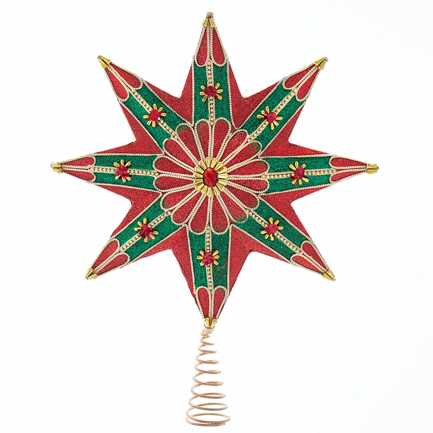 Best Sale ❤️ Kurt S. Adler, Inc. ✨ Christmas Tree Toppers Kurt Adler 16-Inch 8-Point Red, Green, And Gold Traditional Star Tree Topper ✨