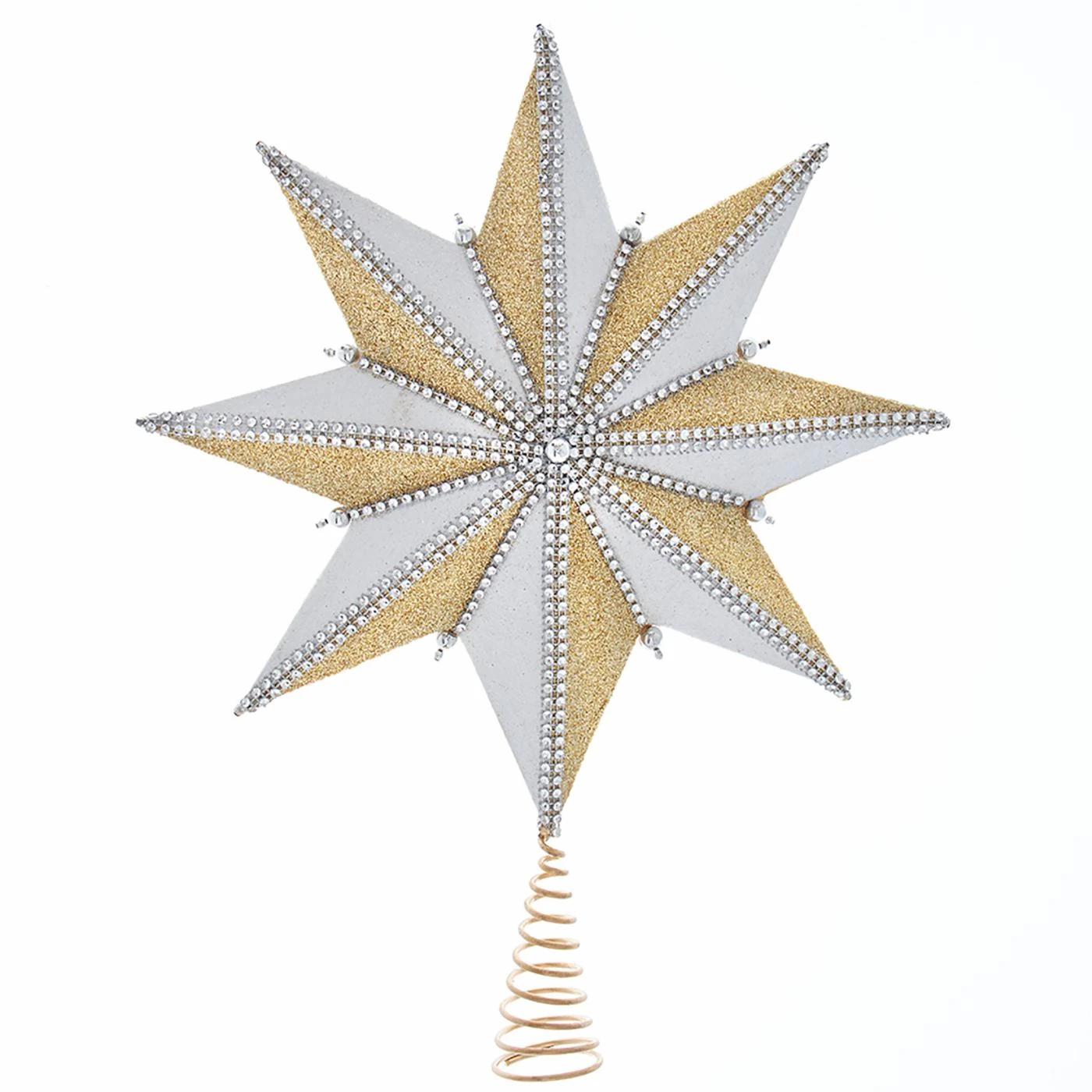 Buy โญ Kurt S. Adler, Inc. ๐ Christmas Tree Toppers Kurt Adler 16-Inch 8-Point White And Gold Star Tree Topper โจ