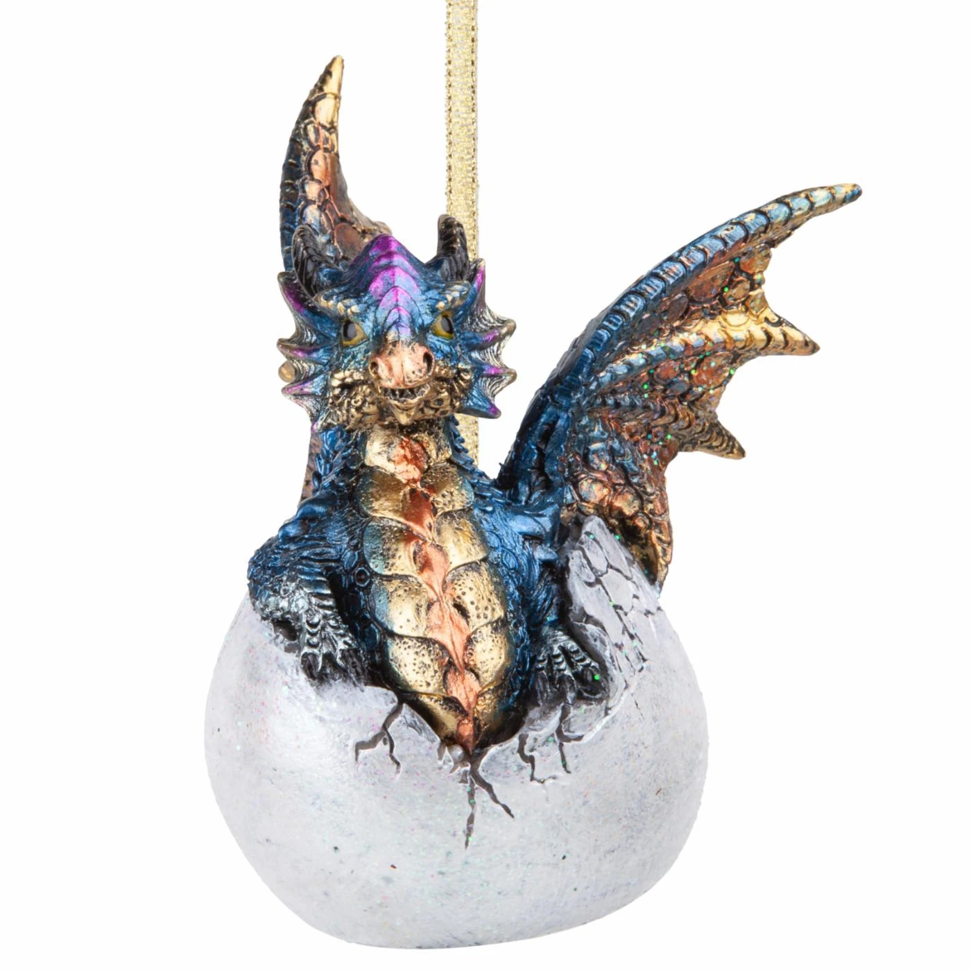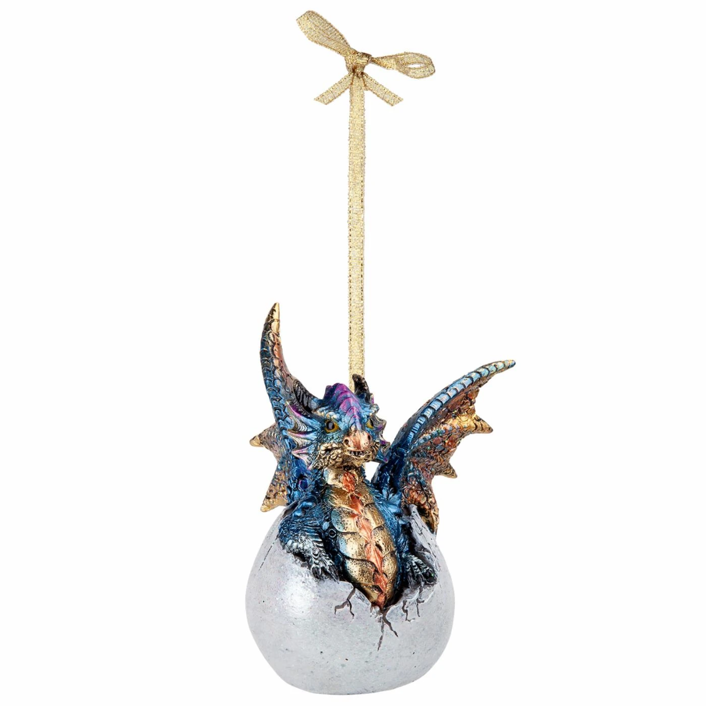 Featuring 360-degrees of artisan-worthy sculpting, the Design Toscano Hard Boiled Dragon Hatchling Holiday Ornament will infuse your home with gothic charm. This dragon hatchling ornament is crafted from resin and boasts multicolored metallic hues. It will arrive with its cord and comes ready for display.