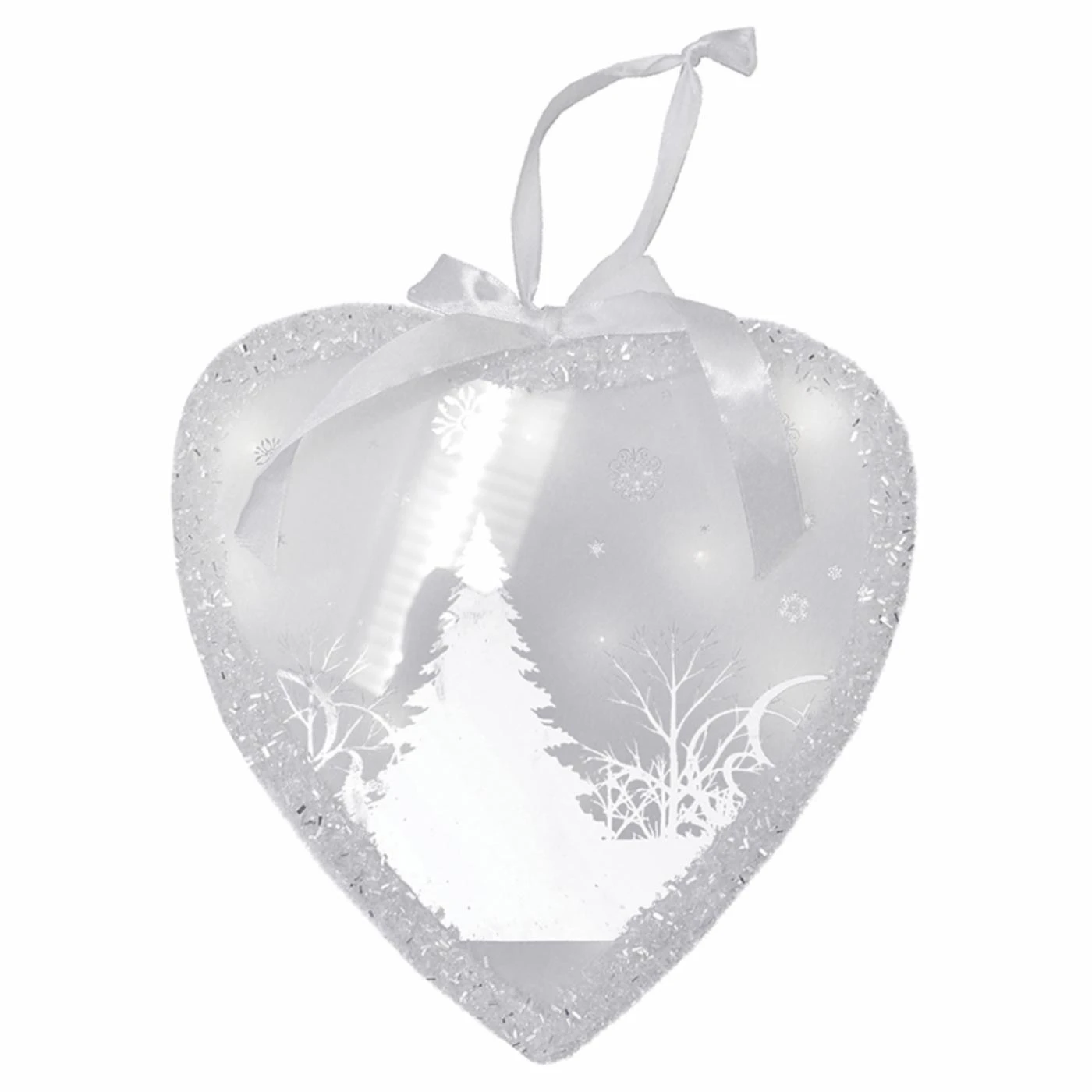 Bring a little sparkle to your holiday tree with the Northlight 8 in. Pre Lit LED Wintery Woods Heart Christmas Ornament. This heart-shaped ornament features a glittered border that calls attention to the snowy landscape. A ribbon at the top makes it ready to hang anywhere in your home for the season.