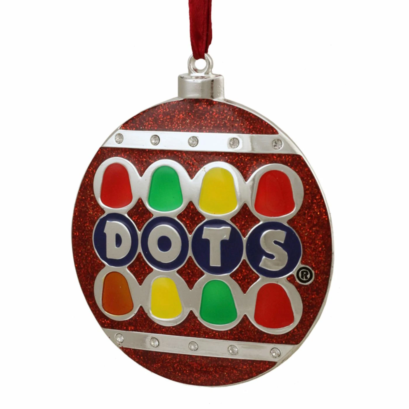 The Northlight 3.5 in. Silver Plated Dots Candy Logo Christmas Ornament is enlivened with a colorful retro Dots candy logo that adds a festive, fun touch to your holiday trim. This charming ornament is made of silver-plated enamel in vibrant colors and includes 10 silver European crystals for added sparkle and shine.