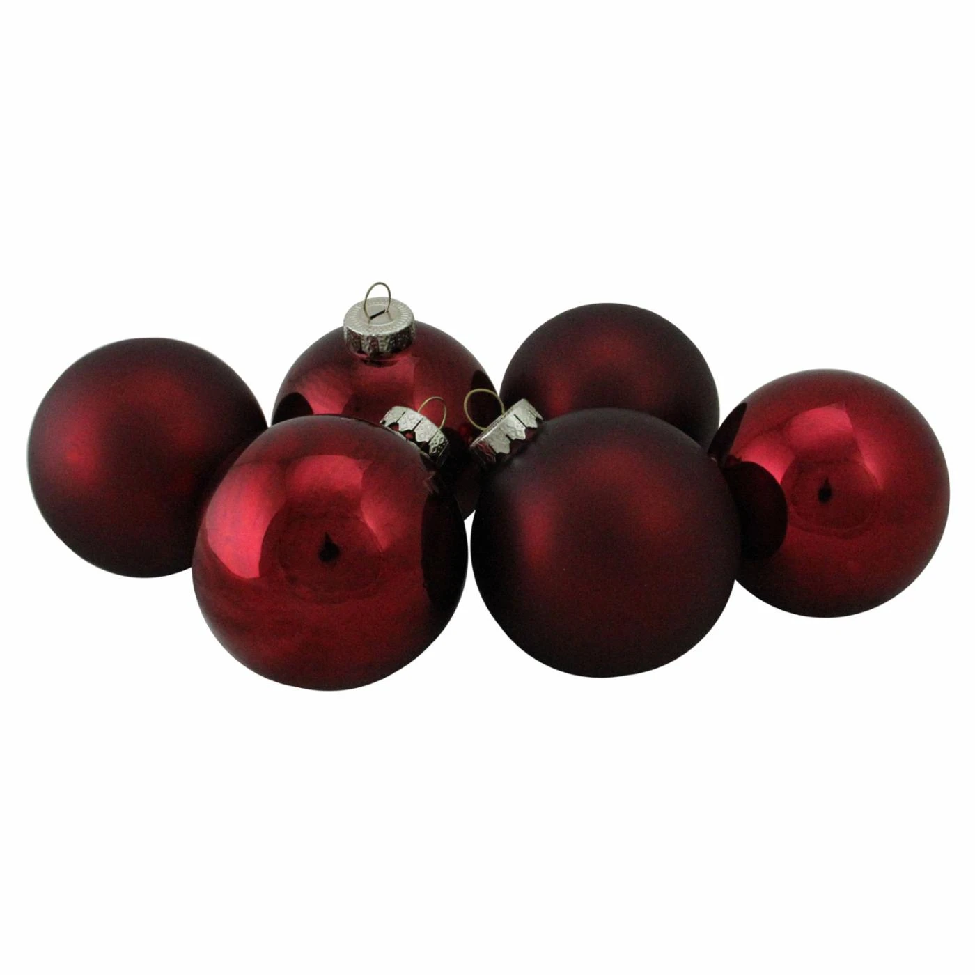 Outfit your tree in cheery traditional style with the Northlight 6 Piece 3.25 in. Shiny and Matte Ball Ornament Set. These sleek glass ball ornaments feature contrasting shiny and matte finishes. They are topped by metal loops to give you a secure point for hanging.