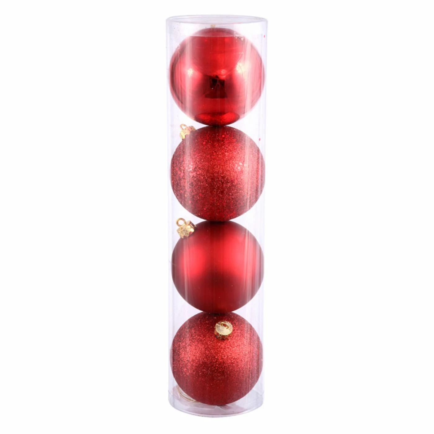 Your Christmas tree wouldn’t be the same without a healthy dose of red. The Vickerman 4.75 in. Red 4 Finish Ball Assorted – Set of 4 gives you a shot of color that makes a big impact. Included are four large hanging ball ornaments that each have a distinctive finish or shade of red. They’re crafted of lightweight, shatterproof plastic to add a variety of Christmas red, sparkles, and matte finishes to your decor.