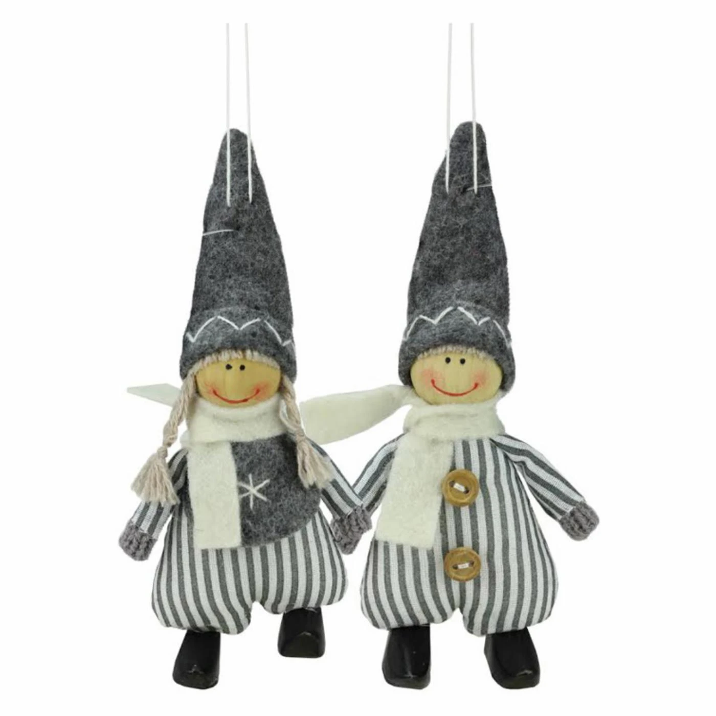 Make your Christmas tree a little more cheerful with the addition of the Northlight 5.5 in. Boy and Girl Decorative Hanging Ornaments – Set of 2. This pair of ornaments feature a boy and girl wearing an adorable gray and white outfit.