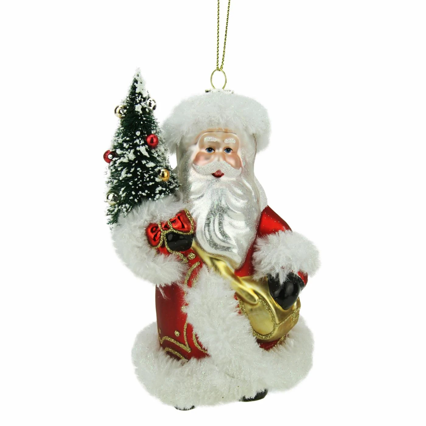 The Northlight 5.5 in. Old World Santa with Christmas Tree Glass Ornament brings a touch of classic charm to your tree with a colorful Old World Santa Claus. This adorable glass ornament is holding a green tree adorned with ornaments and features soft faux fur trim details on this coat and hat.