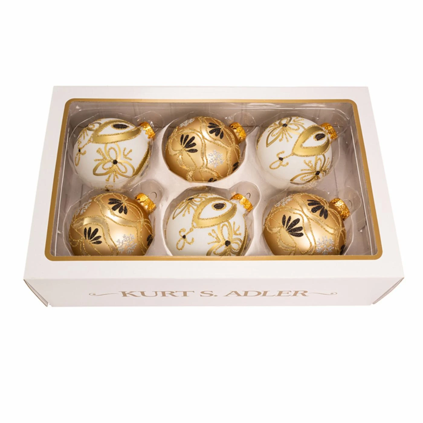 Bring a touch of elegance to your tree with the Kurt S. Adler Gold and White Ball Ornaments – Set of 6, enlivened with an abundance of gold, glittery designs. This set of six ball ornaments are an excellent addition to holiday dΓ©cor to give your seasonal look a bit of shimmer and high-end style.