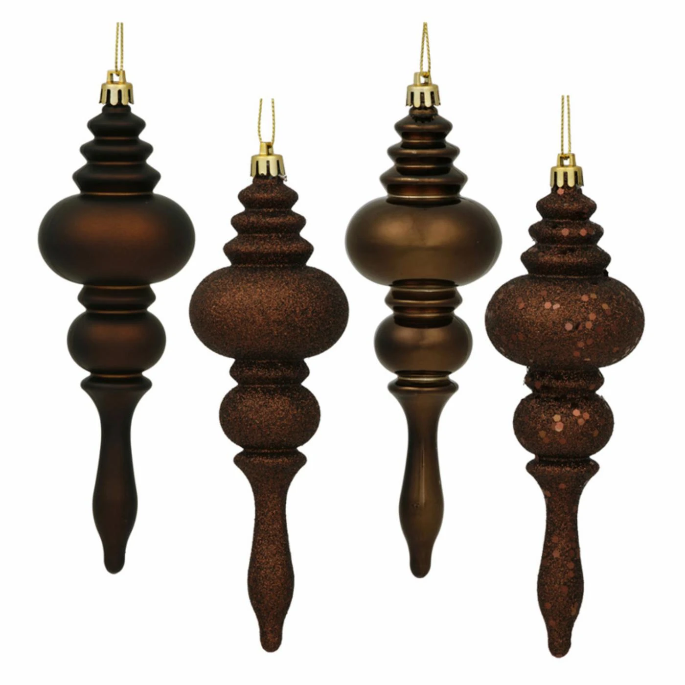 While classically shaped, the Vickerman 7 in. 4 Finish Finial Ornament – Set of 8 comes in a range of Christmas color options, from classic to ultra contemporary. The set includes a variety of glittery, matte, and polished finial ornaments.