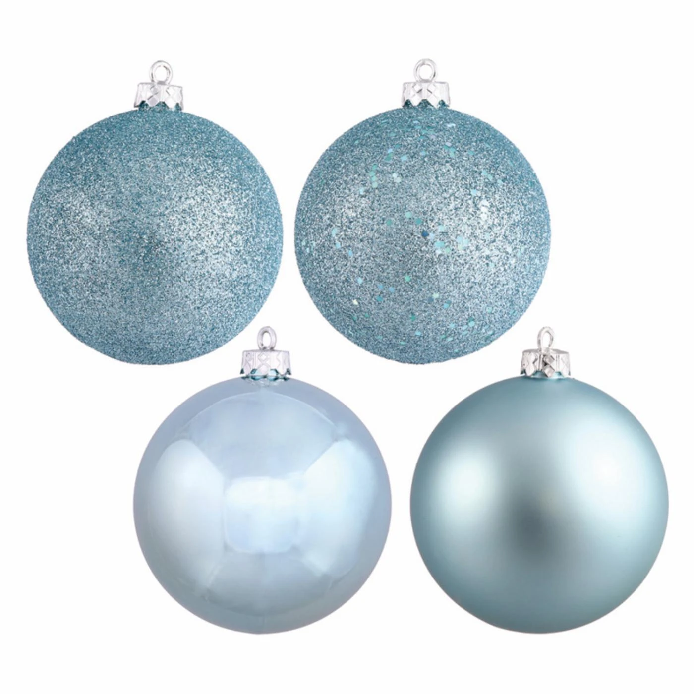 You get one of each finish in this Vickerman 8 in. 4 Finish Ball Ornament – Set of 4: sequin, glitter, glossy, and matte. The color options range from darling to daring.